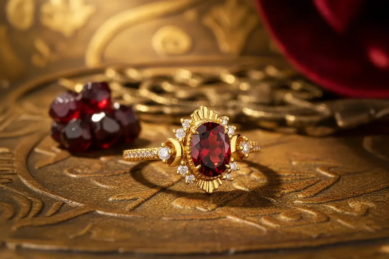 Our collection features premium earth-mined garnets, primarily from the Pyrope and Almandine species, known for their deep, velvety wine-red hues. Unlike many other gemstones, garnets are rarely treated with heat or chemicals, offering a 100% natural, vibrant color that glows with an internal fire—perfect for creating a moody, high-contrast aesthetic.